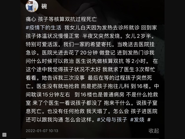 然后去年下半年以来尤其是西京所发生的拖死8个月胎儿,耽误心梗抢救等怪事说明中国注射的疫苗社会功能性检验 ...全中国目前是上怕一个人和下怕一个疫的惊弓态。
